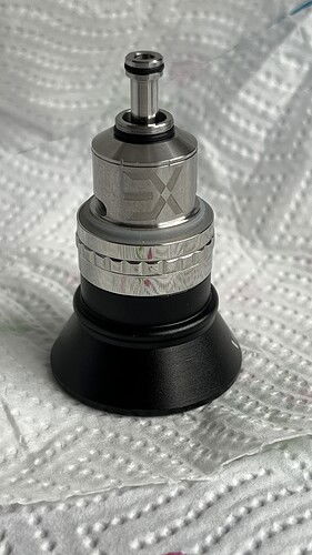 Full nyitott levegővel is elég szűk. Kb 1,2-1,3 mm lehet a kémény belső átmérője, nem mértem, de érzésre picit szűkebb, mint a Byka az 1,4-es air pinnel.
