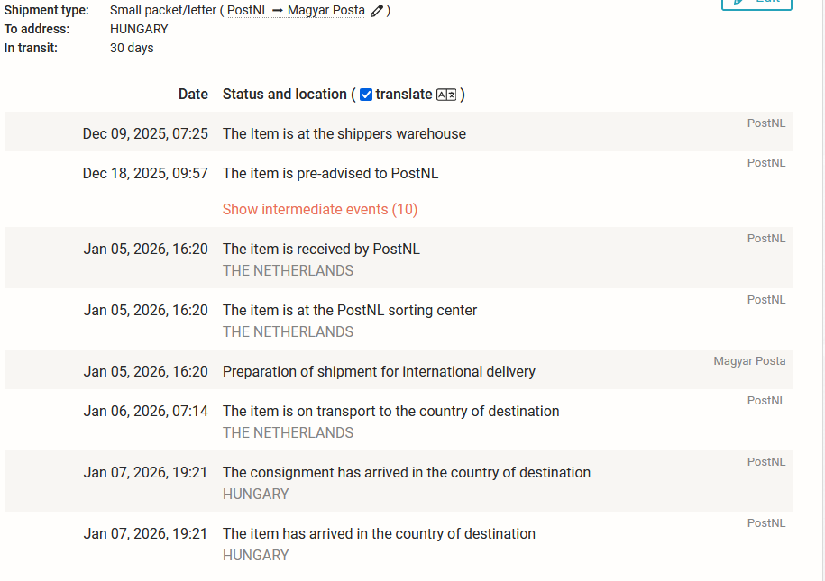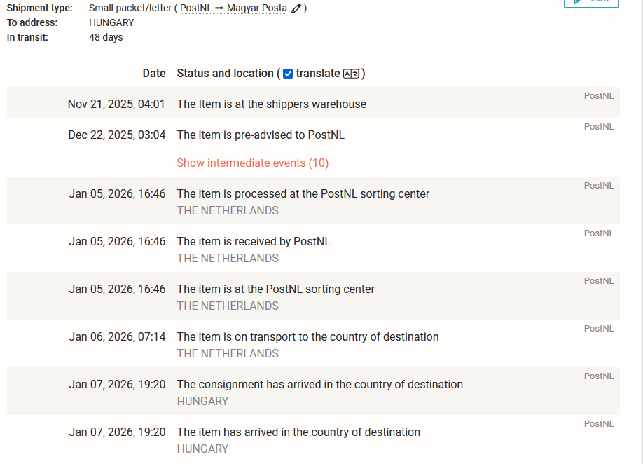 Nekem egyszer az aliról 6 nap alatt ideért, basszus nem hittem a szememnek :slightly_smiling_face: hamarabb itt volt mint az Olaszoktól, vagy a Franciáktól, a Csehek tudtak ilyen szállítási időt.