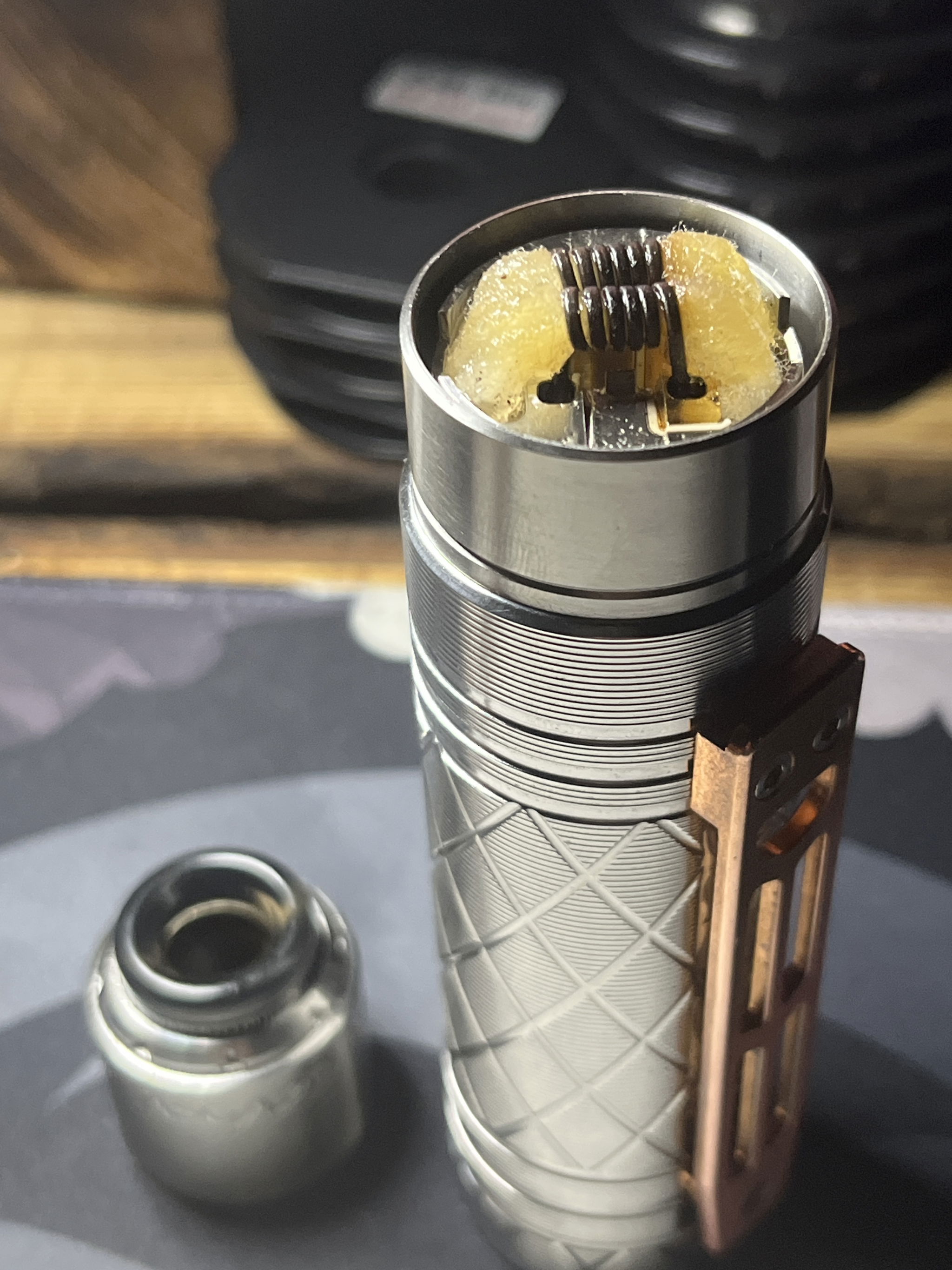Probably the coil is far from the air intake, and itâs also questionable what the wire is? If you have 0.3mm wire (which is perhaps specifically for building), thatâs rather for MTL use. The triple core size is large (in my opinion), find a 2.5mm drill bit, and try to coil it so there are no gaps between the wraps. The coil should be as close as possible to where the air enters. I fear this atomizer will never be good, especially for MTL⊠Thatâs all the advice I can think of right now.