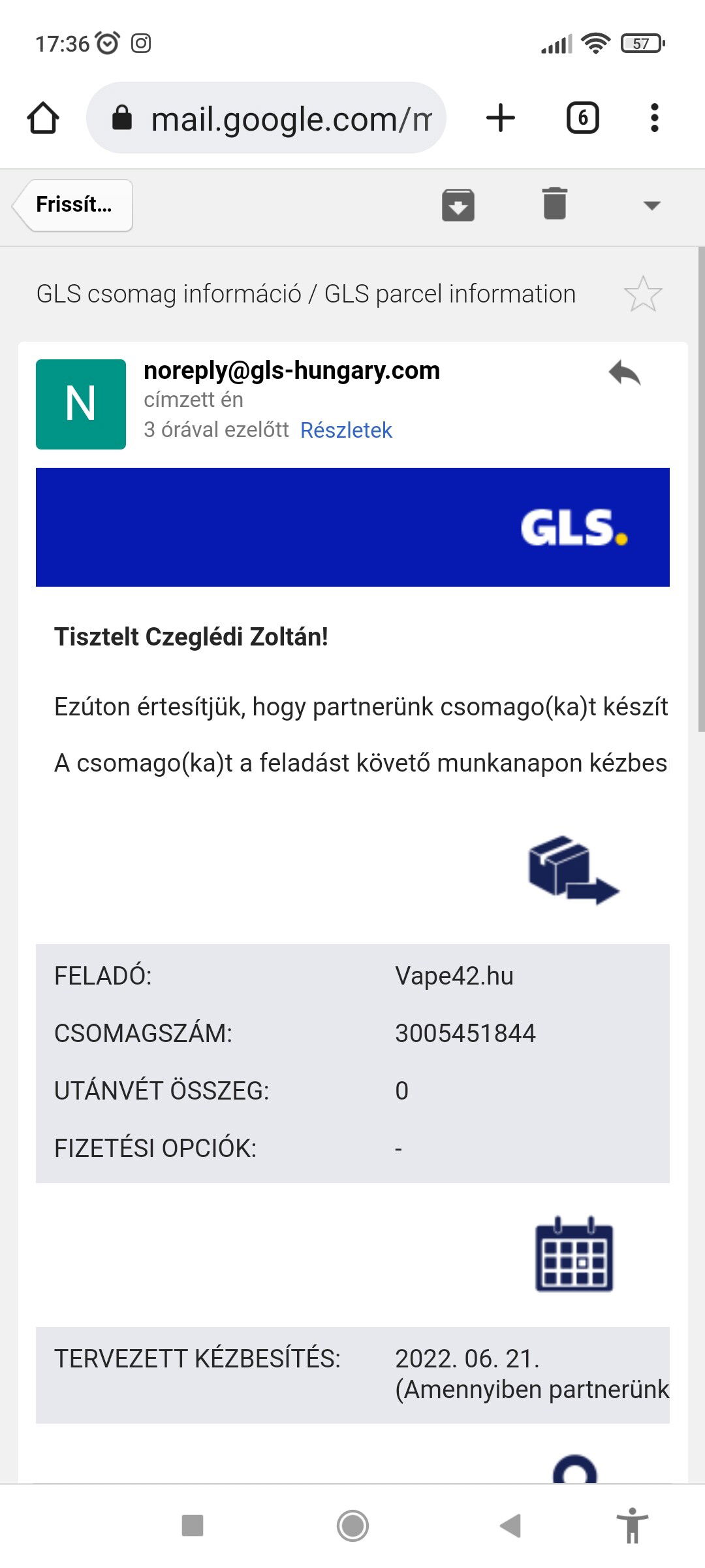 Akkor passz. Én mindig kaptam a GLS-től emailt.